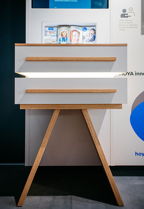 - Création de meubles ergonomiques, innovants et astucieux, adaptés aux usages des opticiens et des clients tout en apportant une expérience client innovante.
