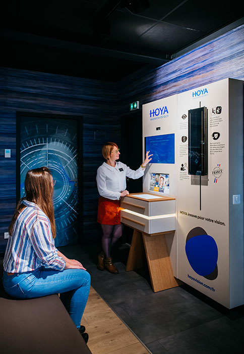 - Créer un espace dédié aux démonstrations de verres dans des magasins d’optique afin de valoriser l’expertise en santé visuelle des clients HOYA.
